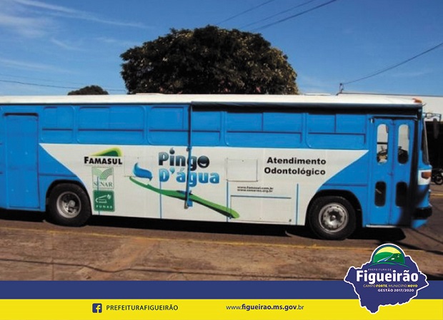 Trata-se do projeto Pingo D’água do Senar/MS (Serviço Nacional de Aprendizagem Rural), que oferece atendimento odontológico gratuito a população rural de Mato Grosso do Sul, e estará atendendo em Figueirão e Santa Tereza, em duas etapas, entre os dias 27 de novembro e 14 de dezembro de 2017.