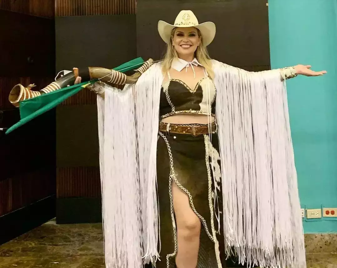 Mariane vestida com traje pantaneira no Miss Universo Plus Size (Foto: Arquivo Pessoal)
