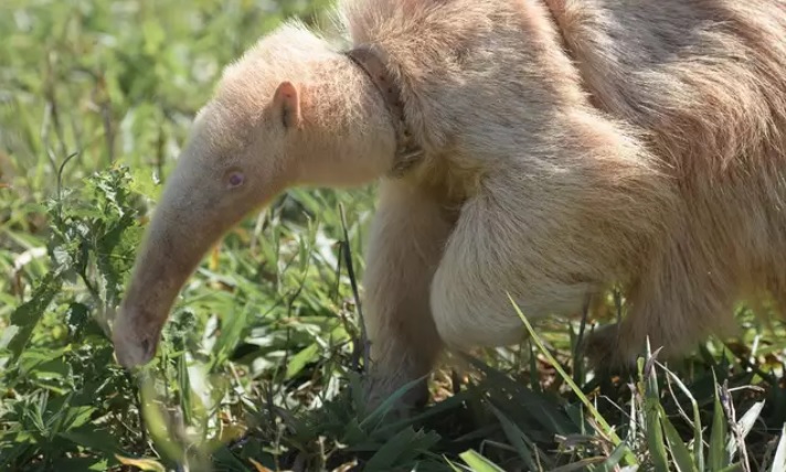 Tamanduá-bandeira albino é descoberto em fazenda de MS