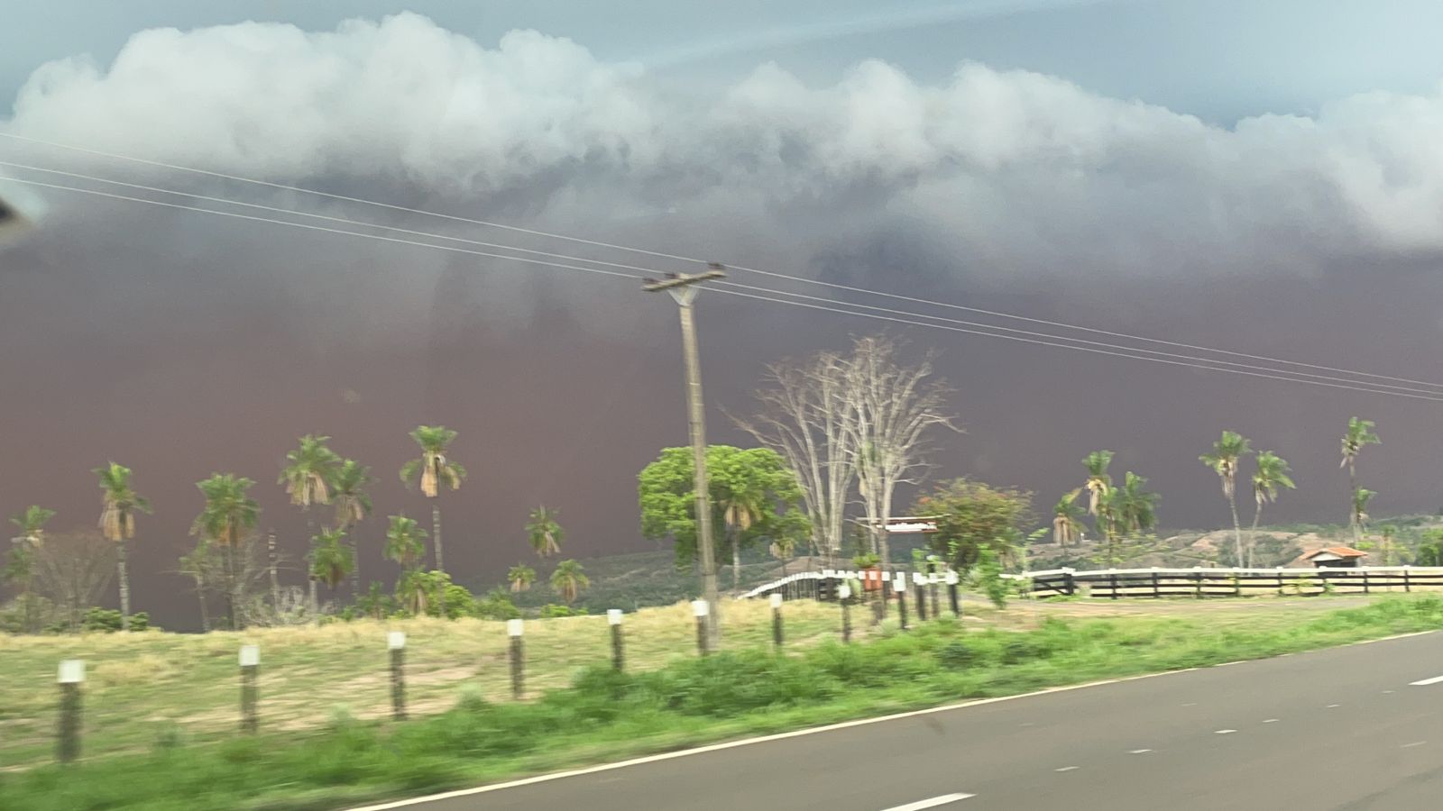 Nuvem de poeira chegando em Camapuã na tarde desta sexta (15) - Foto: WhatsApp / InfocoMS