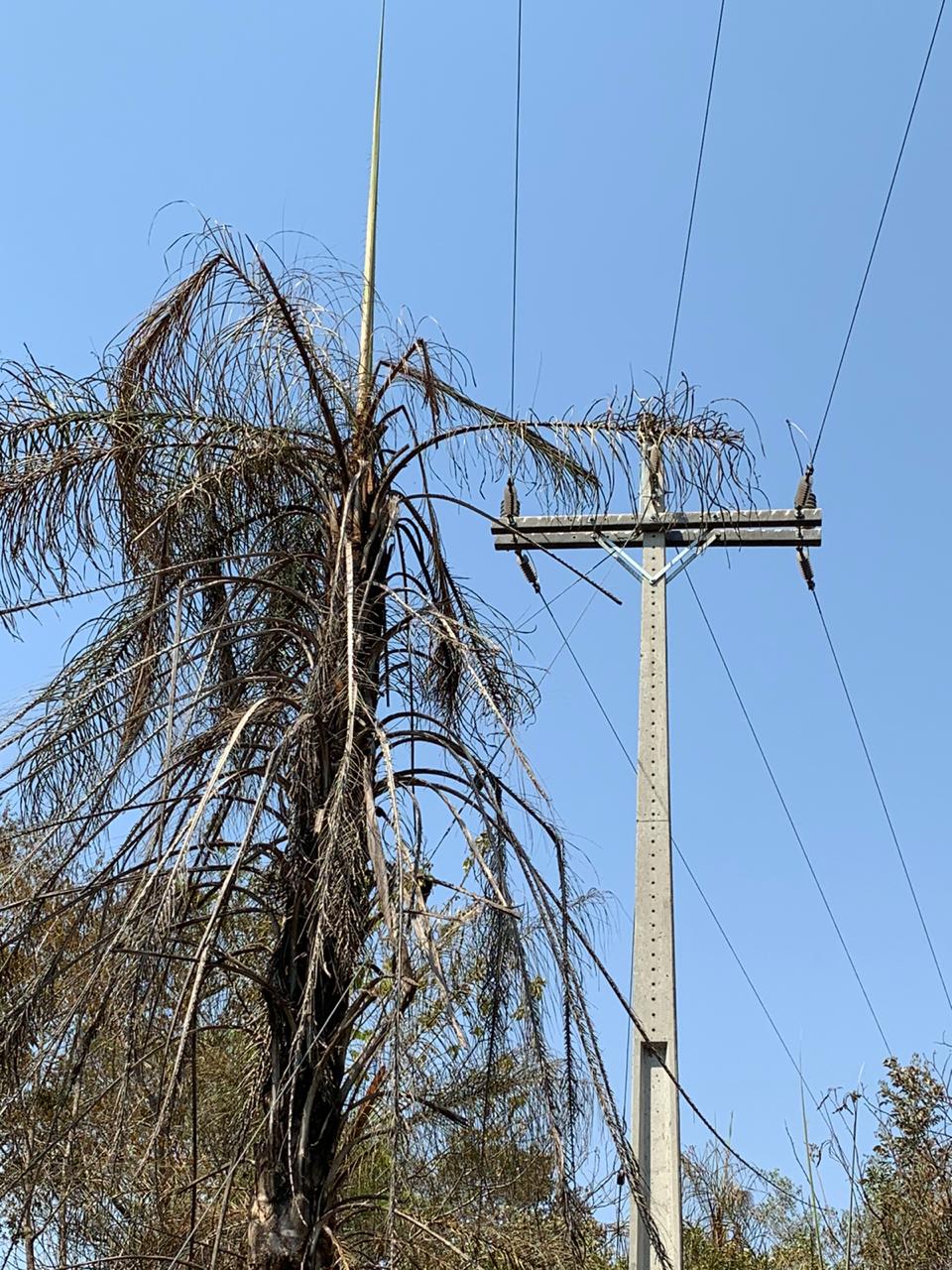 Pé de côco Macaúba com uma das folhas sobre os fios de energia, o que pode ter causado o inicio do fogo - Foto: WhatsApp / InfocoMS