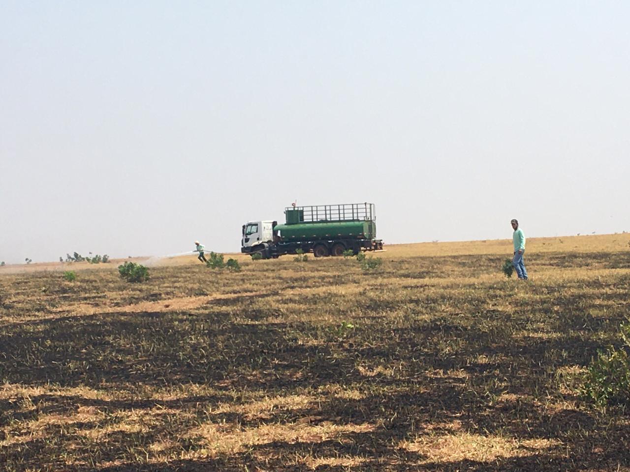 Caminhão pipa da fazenda apagando o fogo - Foto: WhatsApp/InfocoMS