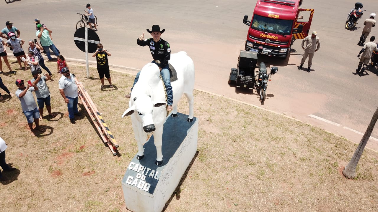 José Vitor Leme montou em monumento da cidade - (Foto: Andrei All Drone)