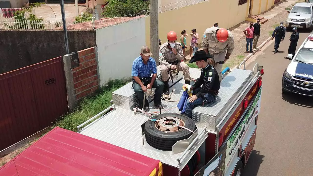 José em carro de Bombeiros durante desfile pelas ruas de Ribas do Rio Pardo. (Foto: Andrei All Drone)
