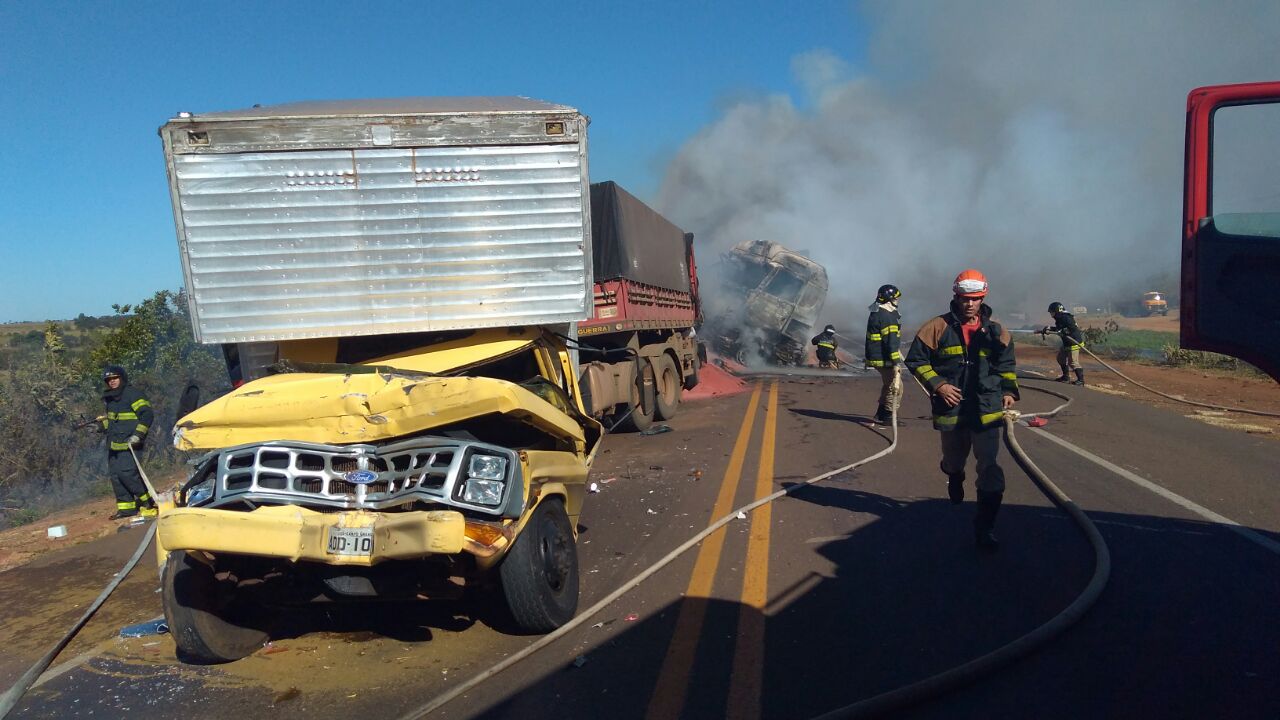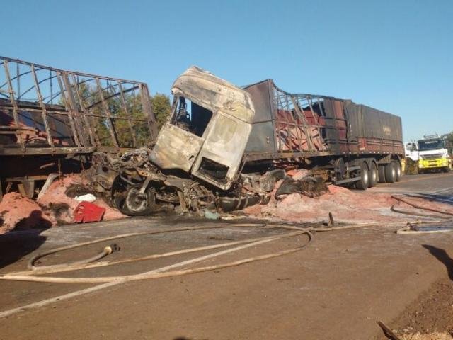 Acidente grave vitimou ao menos duas pessoas no início da tarde de hoje, por volta das 14h, na BR-163, saída para São Paulo, em Campo Grande. Carreteiro morreu carbonizado depois de colidir na traseira de outra carreta, e motorista do carro de passeio que seguia atrás, também faleceu.