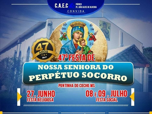 Neste fim de semana, 8 e 9 de julho, acontece a 47ª festa de Nossa Senhora do Perpétuo Socorro. O evento tradicional é realizado no distrito Pontinha do Cocho.