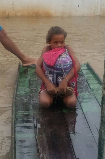 A menina correu e colocou todos os seus livros dentro de uma mochila colorida, deixando para trás brinquedos e roupas. Ajoelhada na jangada, Rivânia aparece nas fotos abraçada com a mochila. De acordo com testemunhas, a criança ficou assim até que todos estivessem salvos: ela e os livros.