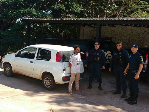 O autor do furto tentou entrar em uma estrada vicinal, mas foi capturado no matagal. O indivíduo foi conduzido até a DELPOL para que as devidas providencias sejam tomadas.