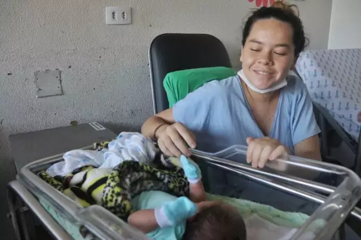 Jasmym Prates da Silva, de 17 anos, seguiu a tendência e desistiu de batizar filho como Enzo Gabriel. Miguel nasceu nesta segunda-feira. (Foto: Paulo Francis)