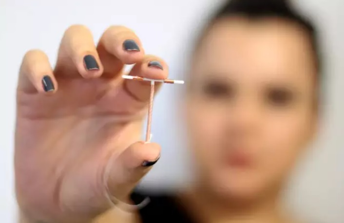 Mulher segurando um DIU de cobre, um dos métodos mais seguros oferecidos pelo SUS. (Foto: Ministério da Saúde)
