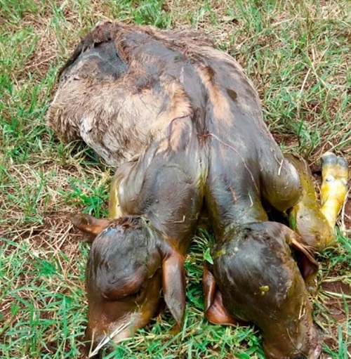 Um bezerro com duas cabeças nasceu na tarde desta quinta-feira (24), numa fazenda na região de Bandeirantes, na região Norte do Estado.