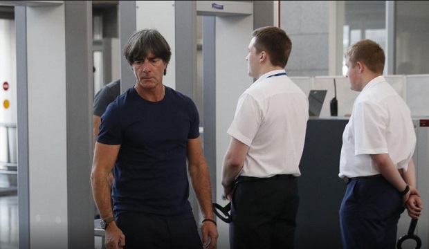 O técnico Joackim Löw manteve o tom e sério e usou óculos escuros mesmo dentro do aeroporto. Outro a usar óculos escuros foi o zagueiro Jérôme Boateng.