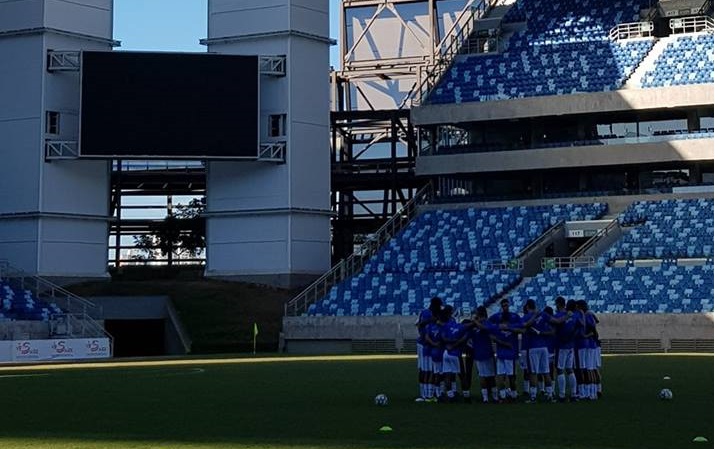 Equipe do Bragantino em campo na Arena Pantanal em Cuiabá-MT - Foto: Facebook/Bragantino