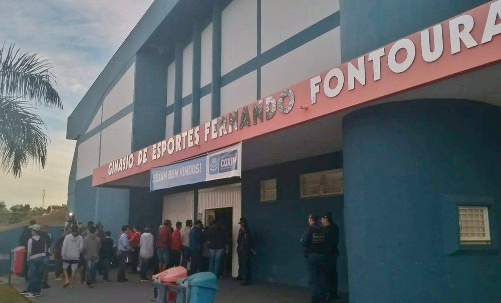 Fila em frente ao ginásio na manhã deste sábado (09) para a final da Copa Morena (Foto: Roberto Oshiro / TV Morena )