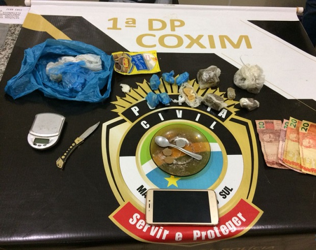 O jovem F. S. A., de 24 anos, foi preso por suspeita de tráfico de drogas na noite deste sábado (21), na região central de Coxim.