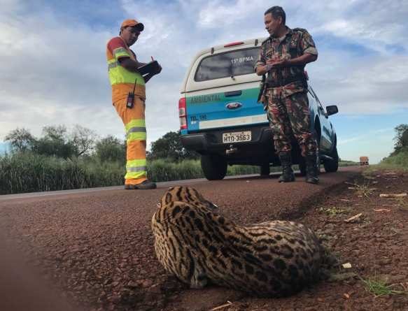 Funcionários da CCRMSVIAs acionaram a PMA (Policia Militar Ambiental) de Campo Grande na madrugada desta quarta-feira (18), após flagrarem uma jaguatirica (Felis pardalis, ou Leopardus pardalis) atropelada às margem da BR 163, na altura do km 355, no município de Nova Alvorada do Sul.