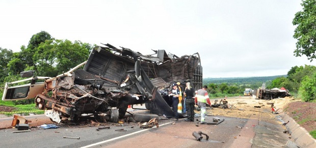 Uma colisão frontal entre duas carretas deixou uma pessoa morta por volta das 5h40 desta terça-feira (27), na BR-163 em Coxim.