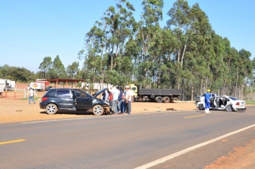 Aconteceu um grave acidente por voltas das 08h30min desta terça-feira, na BR 060 km 48, entre Chapadão do Sul e Paraíso das Águas em frente ao Frigorifico Uniboi, envolvendo dois carros um Peugeot 307 Preto (KWS 0714 – Antonio João - MS) dirigido pela senhora M.P. M. L., 41 que tinha seu marido como passageiro que não tiveram ferimentos graves, somente escoriações pois estavam usando o sinto de segurança e o acionamento do Air Bag, o outro veiculo envolvido no acidente foi um GM Vectra Branco (LCM 7285 – Chapadão do Sul-MS) conduzido por A.L.B, 36 anos.e tinha como passageiros mais 4 pessoas, das quais, feriu-se gravemente a senhora Maria Pastora, 47 anos, que é moradora de Paraíso das Águas e trabalha no frigorífico.