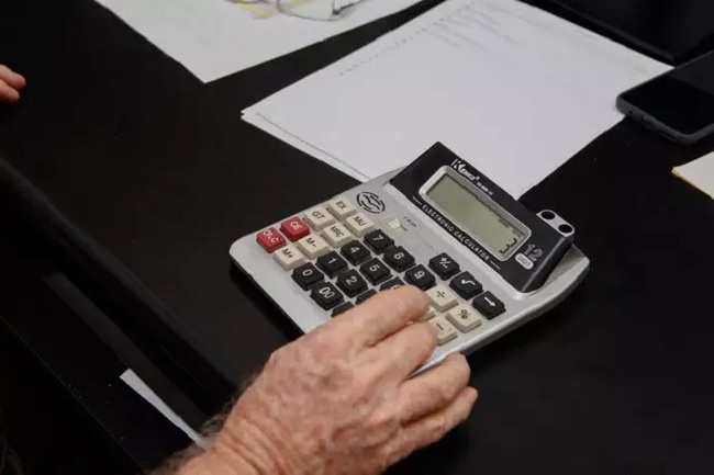 Consumidor usando calculadora para fazer contas e organizar as dívidas (Foto: Alex Machado)