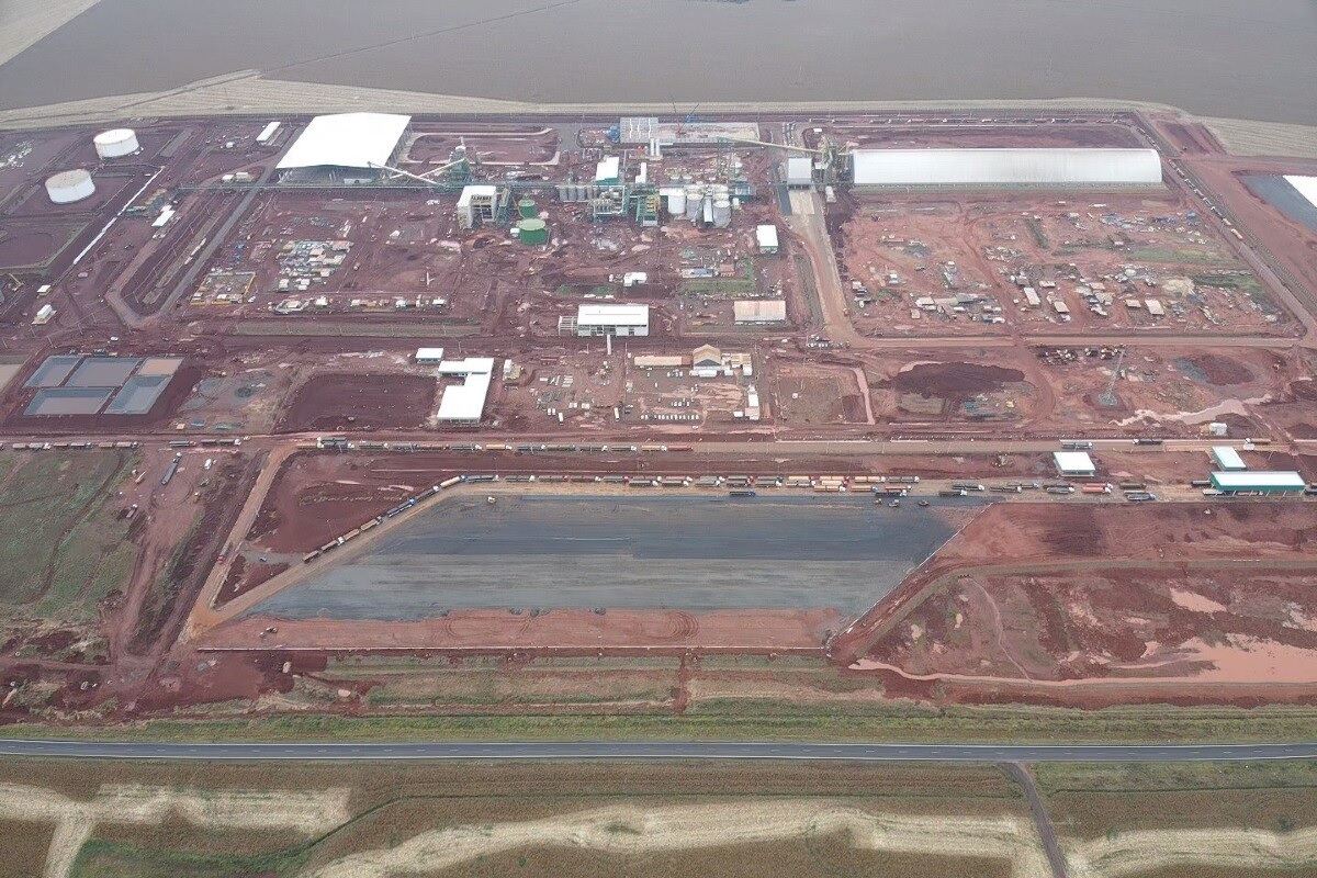 A obra teve início em setembro. No momento estão sendo erguidos os armazéns que terão capacidade mais de 1 milhão de toneladas de grãos e tanques de fermentação.