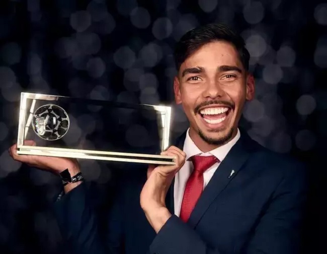 Guilherme Madruga recebendo o prêmio Puskas de gol mais bonito do mundo - imagem: reprodução