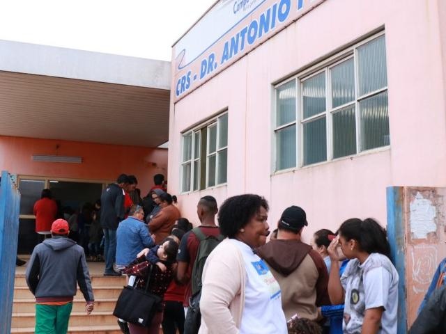 Fila para vacinação no CRS Tiradentes, durante campanha da Sesau (Foto: Henrique Kawaminami)