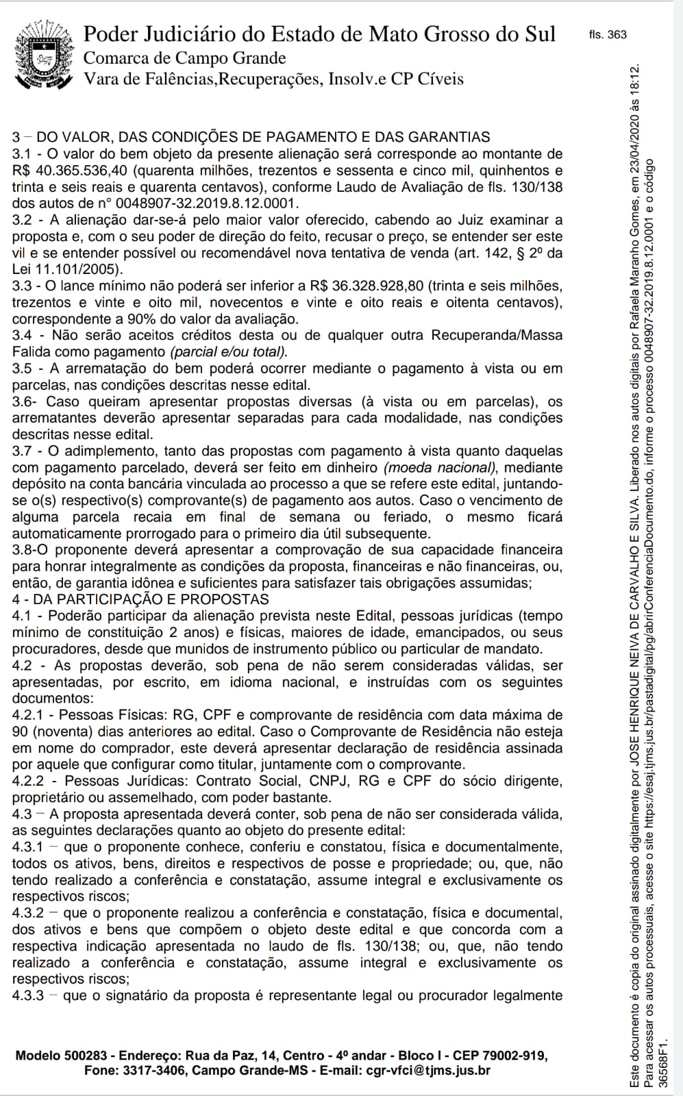 Torna-se público, Edital de retificação e intimação para venda de bem da empresa Brasil Central Máquinas e Equipamentos Agrícolas Ltda. E Outras. Ambas em recuperação judicial.