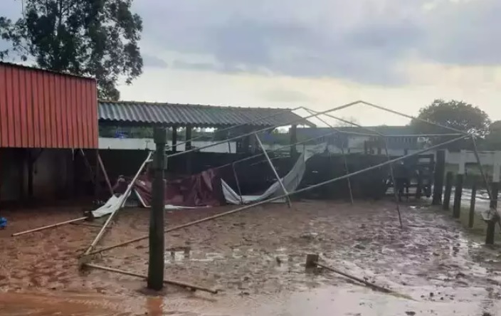 Destelhamento no Clube de Laço Atacama, em Maracaju. (Foto: Direto das Ruas)