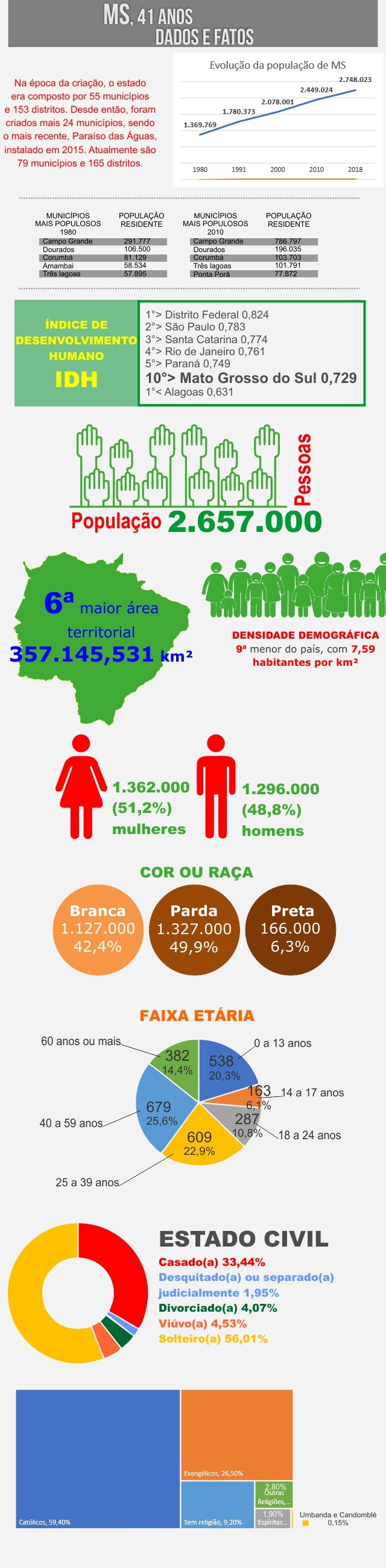 Mato Grosso do Sul faz 41 anos nesta quinta-feira, 11 de outubro, superando a marca de 2,6 milhões de habitantes.