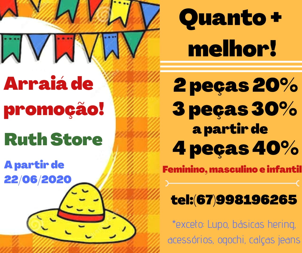 A loja Ruth Store, situada no centro de Camapuã, está com uma impredível promoção no "Arraiá de Liquidação Ruth Store".