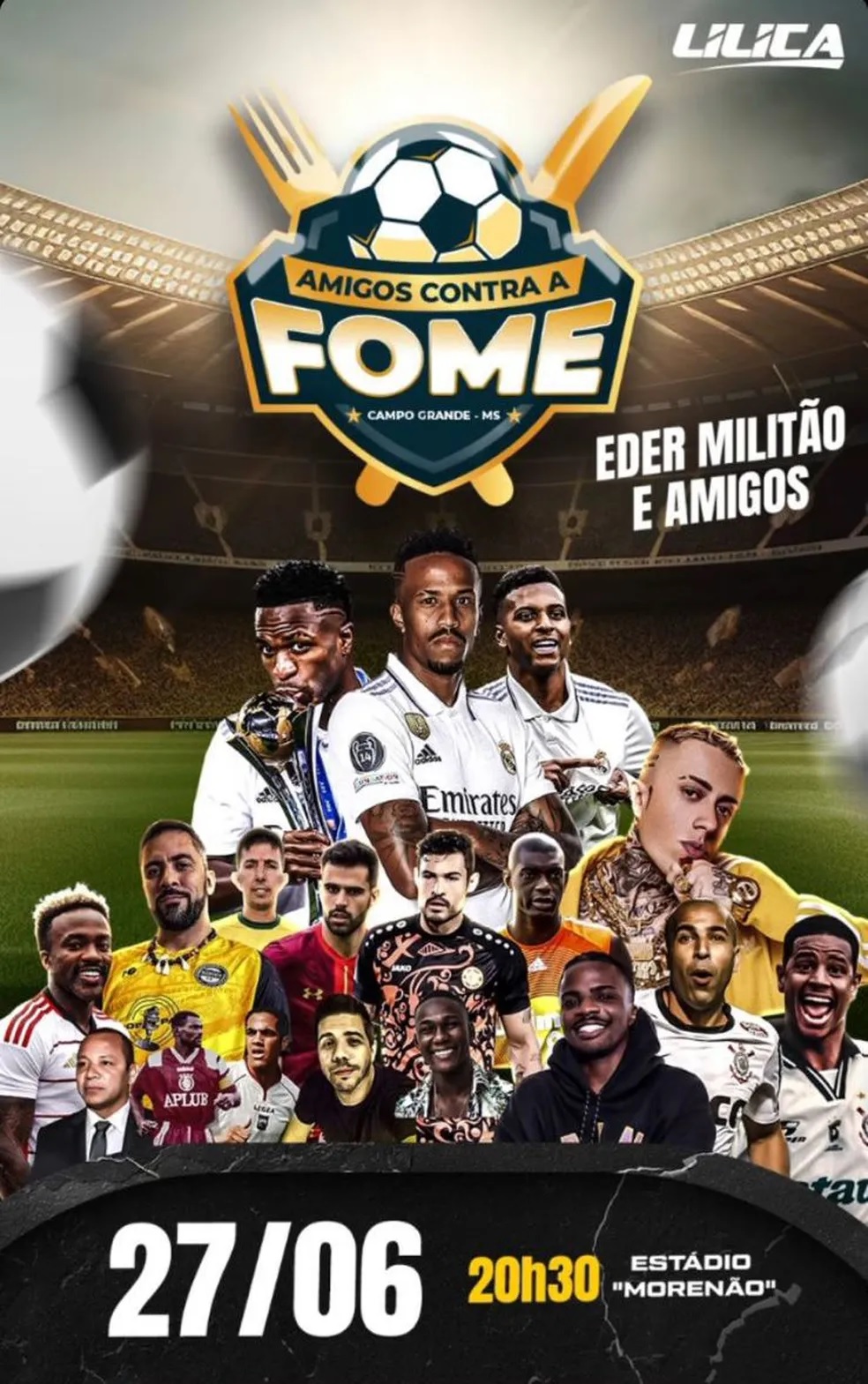 Éder Militão, zagueiro do Real Madrid e da Seleção Brasileira, vai reunir amigos e celebridades em um jogo beneficente, em Campo Grande, no Estádio Morenão. O amistoso "Amigos Contra A Fome" está marcado para a próxima terça-feira (27), às 20h30, mas depende de autorização do Corpo de Bombeiros, que não emitiu o laudo na primeira vistoria ao local, e da liberação do Estádio Universitário Pedro Pedrossian.