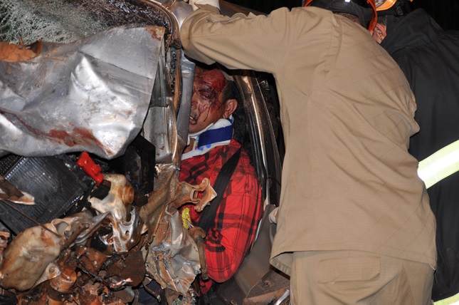 Rui Rogério, sofreu TCE, moderado e está em observação no Hospital Municipal de Chapadão do Sul, sua esposa sofreu pequenas escoriações e corte de vidros na face e braço.
