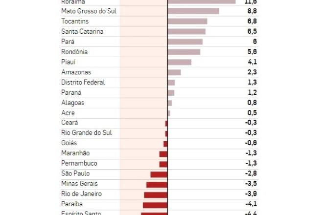 Conforme o Estadão Conteúdo, a região Centro-Oeste foi a que menos sofreu durante a crise econômica, beneficiada pelo câmbio desvalorizado e pelo avanço da agropecuária. Apenas Goiás, que ainda vive crise fiscal, continuará abaixo do nível de crescimento de 2014.