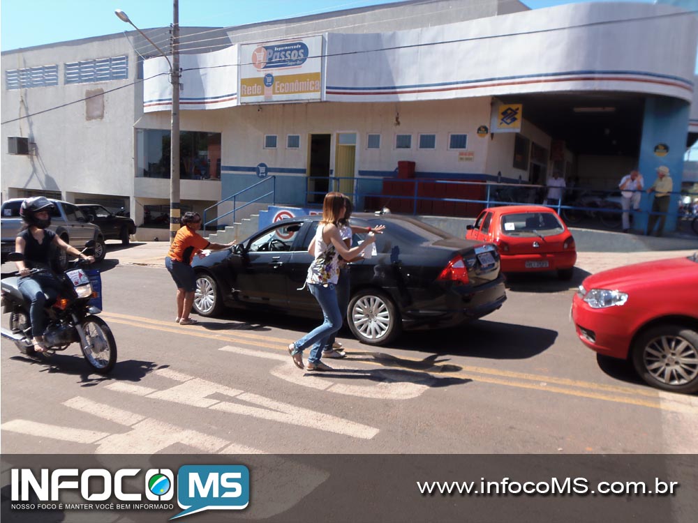 Os motoristas que passam pelo local são convidados a colarem um adesivo comemorativo ao dia da mulher, elas por sinal estão recebendo um batom de presente.