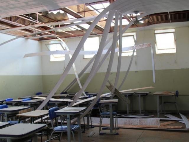 Telhado de escola foi arrancado com a força do vento (Marina Pacheco)