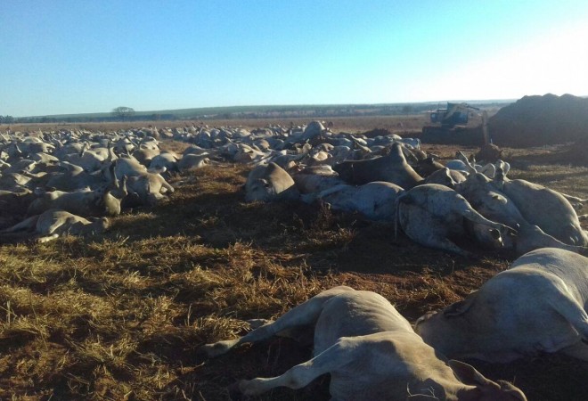 Na tarde desta segunda-feira (7), o pecuarista Pérsio Airton Tozzi teve um prejuízo de mais de R$ 2 milhões com o falecimento de 1.100 animais que estavam confinados na fazenda Marca 7, localizada no município de Água Clara, a 200 km da capital do Mato Grosso do Sul, Campo Grande. Os animais estão sendo enterrados na própria fazenda e não há registro da doença nas propriedades vizinhas.