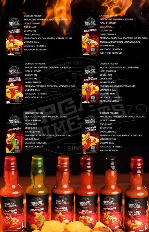 - Molho de pimenta desde a mais suave até a pimenta mais ardida do mundo