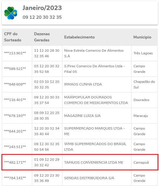 Para conferir se você foi contemplado, basta acessar o site www.notamspremiada.ms.gov.br e digitar o seu CPF. Lá também você tem acesso à lista completa dos estabelecimentos onde os ganhadores efetuaram as compras.
