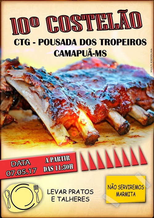 CTG - Pousada dos Tropeiros convida a todos para participar do 10° Costelão, em comemoração ao dia do trabalho.