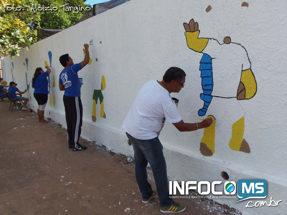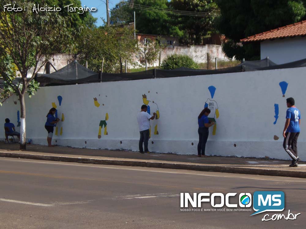 Vai ter Copa sim! E se depender do empenho dos alunos da Escola Abadia Faustino Inácio, será uma copa de muita alegria para a torcida brasileira. Alguns alunos e professores da escola estadual que fica localizada na Rua Pedro Celestino, em Camapuã, estão realizando a pintura do muro da escola com desenhos do ‘Fuleco’, mascote do mundial.