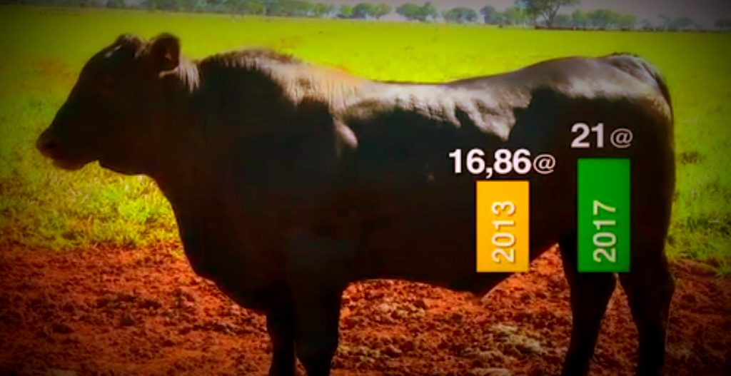 O resultado foi percebido pelo aumento do ganho de peso dos bovinos terminados em cocho. Em 2013, os animais da propriedade eram encaminhados à indústria pesando uma média de 16,86 arrobas, enquanto que em 2017, quatro anos depois, o peso médio é de 21 arrobas, viabilizando uma produtividade de até 18 arrobas por hectare ao ano.