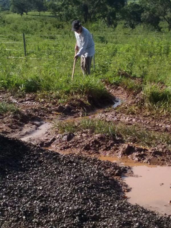 Com ajuda de amigos, o produtor esparramou as pedras pela estrada, só assim foi possível chegar em sua propriedade.