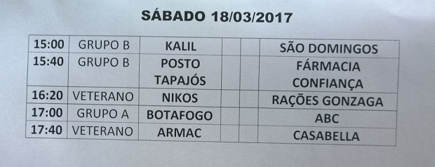 Neste sábado (18) acontece a terceira rodada da Copa Society na AABB. A rodada está marcada para começar as 15:00, lembrando que apenas no primeiro jogo será permitido 15 minutos de tolerância.