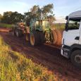 Carreta carregada de soja sendo rebocada por trator na MS-338 a 15km de Camapuã - Foto: WhatsApp/InfocoMS