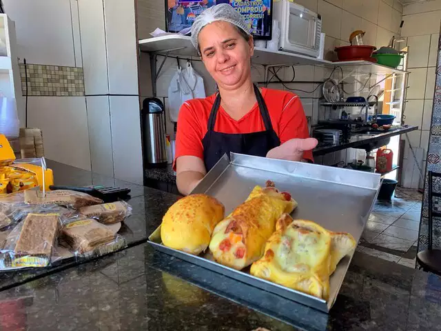 Elisangela se orgulha do cardápio que criou: saltenha de frango com creme de leite, pastel assado e esfiha fechada tradicional, hambúrguer de carne com presunto e queijo. Nada muito diferente, mas feito do jeitinho dela. Aqui ela conta que o hambúrguer é uma produção caseira, feita com patinho. Enroladinho de frango e carne também estão na lista. Todos saem por R$ 10,00, exceto a esfiha pantaneira, que custa R$ 12,00.