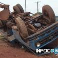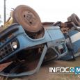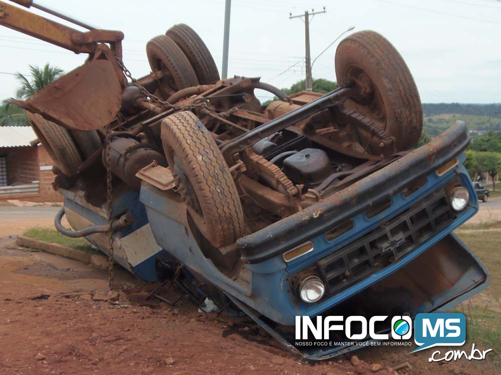 Um caminhão marca Chevrolet, modelo D60, utilizado para carregar água na obra de pavimentação asfáltica da Vila Vista Alegre, em Camapuã, tombou na tarde desta terça-feira (6), com dois ocupantes.