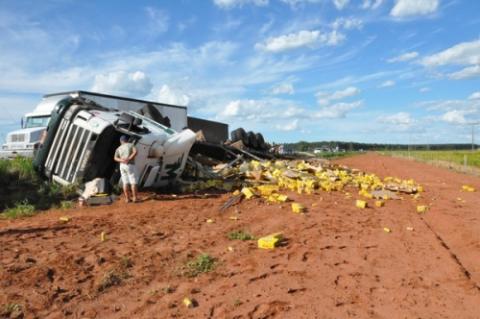 O acidente ocorreu por volta das 16h. A carreta trafegava sentido Chapadão do Sul - Paraíso das Águas, quando o motorista teria perdido o controle e tombado o veículo, que teve cerca de 28 toneladas de cerveja Skol em latas, espalhadas às margens da rodovia.