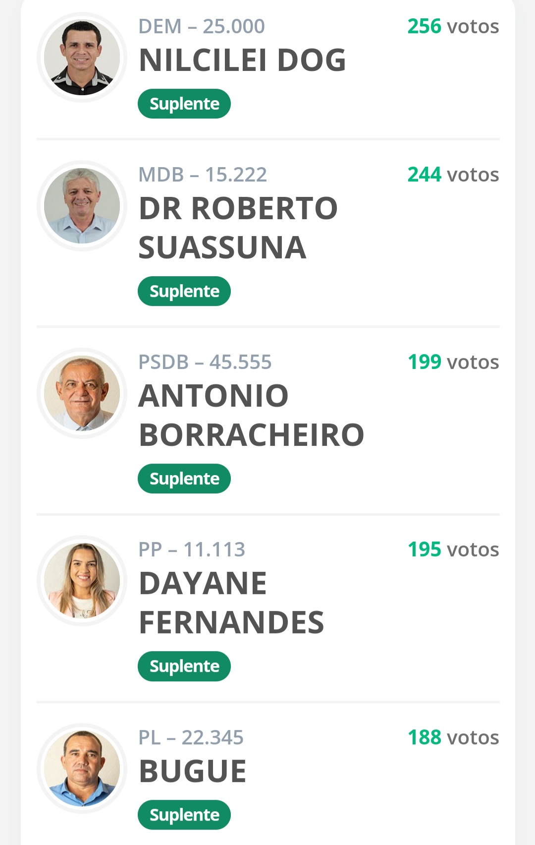 Ainda sobre os atuais vereadores, três deles não concorreram a reeleição, Aloizio Targino, que foi candidato a vice prefeito de Manoel Nery, Dra. Márcia, que foi candidata a prefeita e Hugo Bomfim que não se candidatou a nenhum cargo dessa vez.