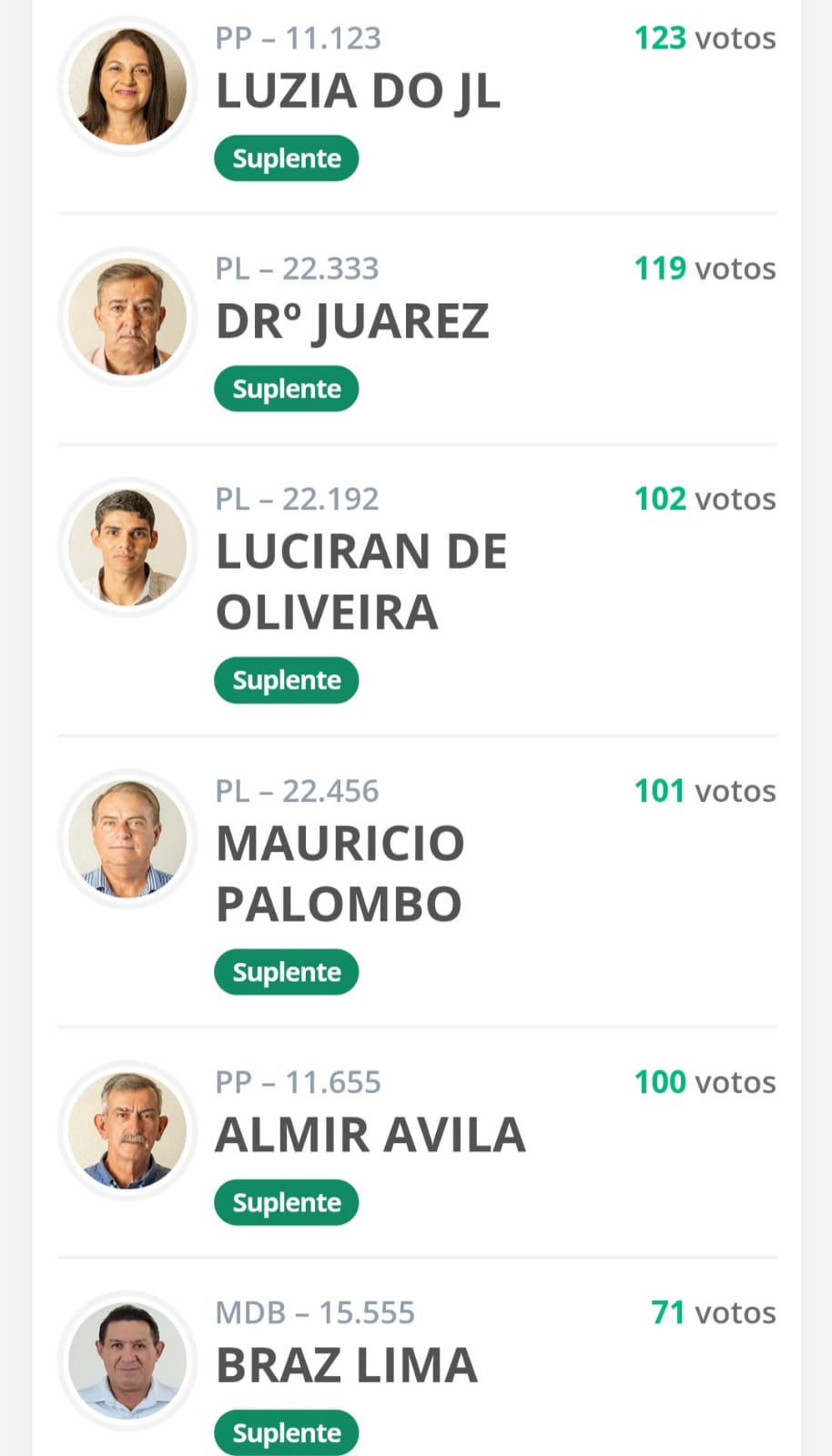 Três dos atuais vereadores não conseguiram a reeleição, Antônio Borracheiro do PSDB com 199 votos, 193 a menos que na eleição anterior, Almir Ávila do PP com 100 votos, 160 a menos que na última eleição e Chitão do PSD com 262 votos, 195 a menos que na anterior.