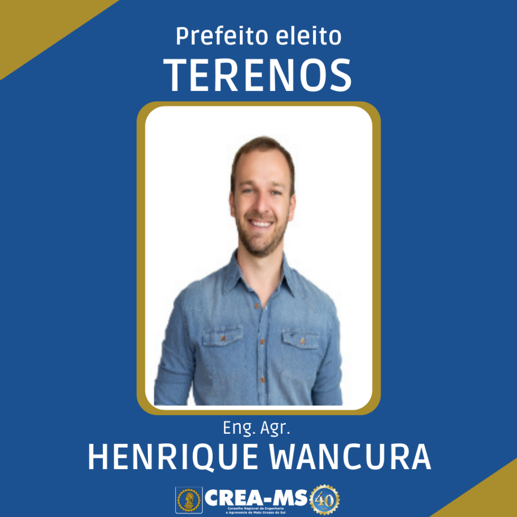 Prefeito eleito de Terenos, Henrique Wancura tem 33 anos e é eng. agr. formado em 2008 pela Universidade Católica Dom Bosco. Do PSDB, foi eleito com 28,96% dos votos e tem Felipe Salomão como vice-prefeito.